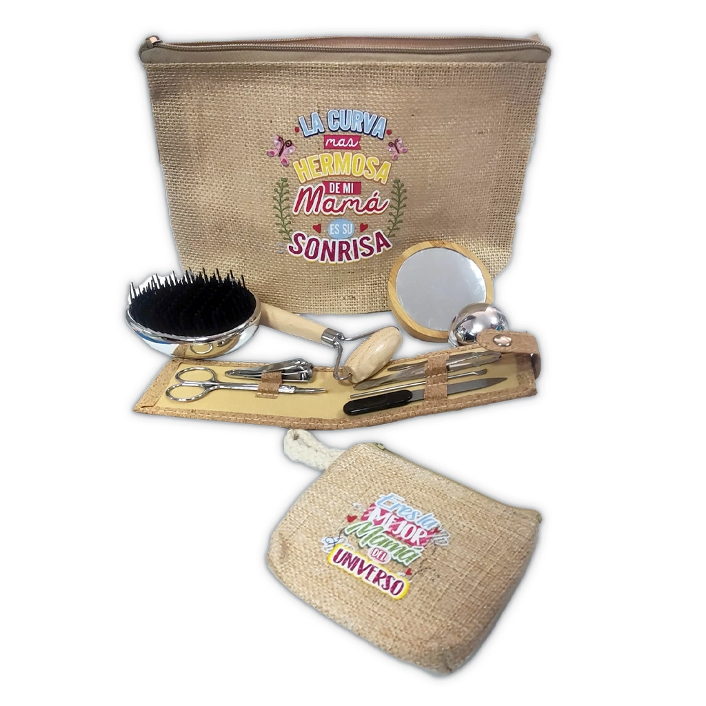 Sorprende a tu madre con un lote de productos diseñado exclusivamente para mimarla y cuidarla. Incluye accesorios prácticos y productos de belleza esenciales en un elegante color yute natural, perfecto para hacerla sentir especial y cuidada.